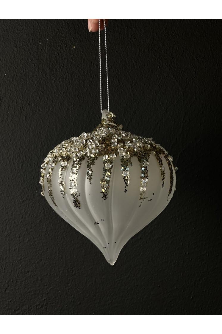 Эта стеклянная игрушка станет незаменимым элементом вашего новогоднего убранства, придав ему изысканность и праздничное настроение.