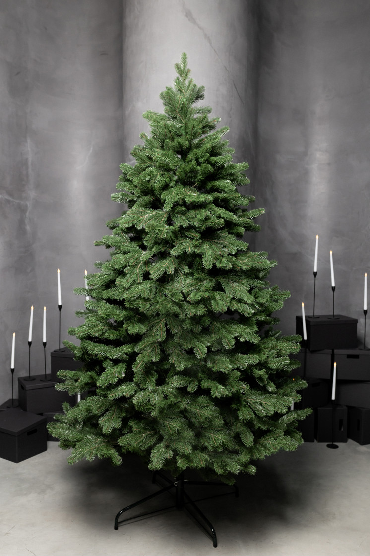 Искусственная новогодняя елка из высококачественной 100% литой хвои. В точности, повторяющей живую натуральную елку, изделие с крепким основанием, изготовленное из безопасного материала, станет настоящим украшением домашнего или офисного пространства на Новый год и Рождество. Красивая густая елка – это незаменимый атрибут новогодних праздников и рождественской вечеринки. Трендовая современная модель имеет качественную густую хвою и надежное крепление. Ствол скрыт пышной раскидистой хвоей. Популярная раскладная елка с крепким каркасом и красивыми веточками с пышной хвоей создает по-настоящему праздничное атмосферное настроение. Украшение такой елки станет настоящим увлекательным творчеством для взрослого и маленького ребенка. Необычная модель конусной формы легко и быстро собирается и разбирается. Закрепленные на стволе кончики веток с мягкой хвоей необходимо отогнуть и осторожно расправить, придав им естественный вид. Пушистое, максимально реалистичное 100% литое изделие имеет надежное крепление ветвей и металлическую стойкую подставку.